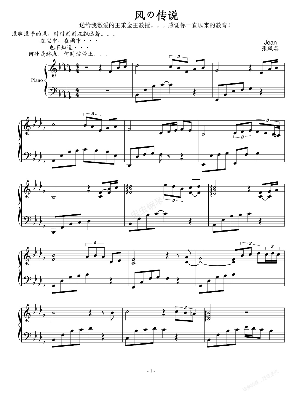 钢琴谱:风の传说