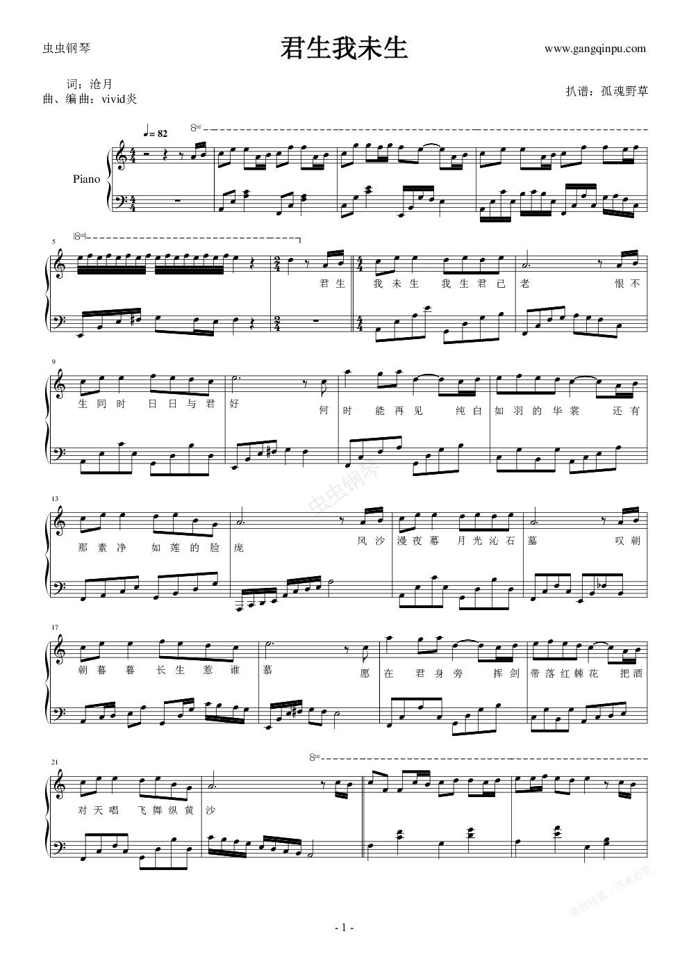 钢琴谱:君生我未生
