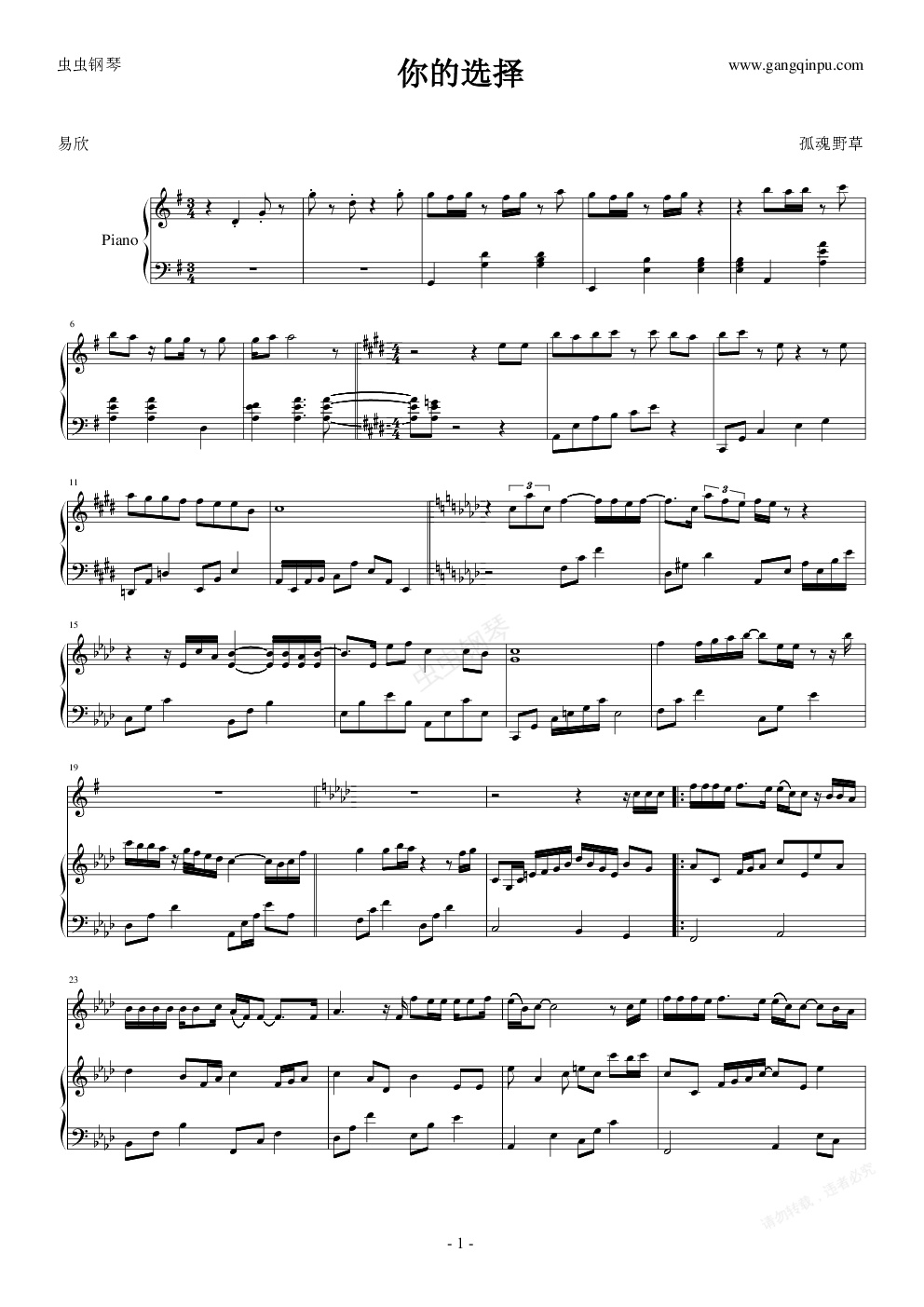 您的位置: 首页 > 钢琴谱库 > 你的选择