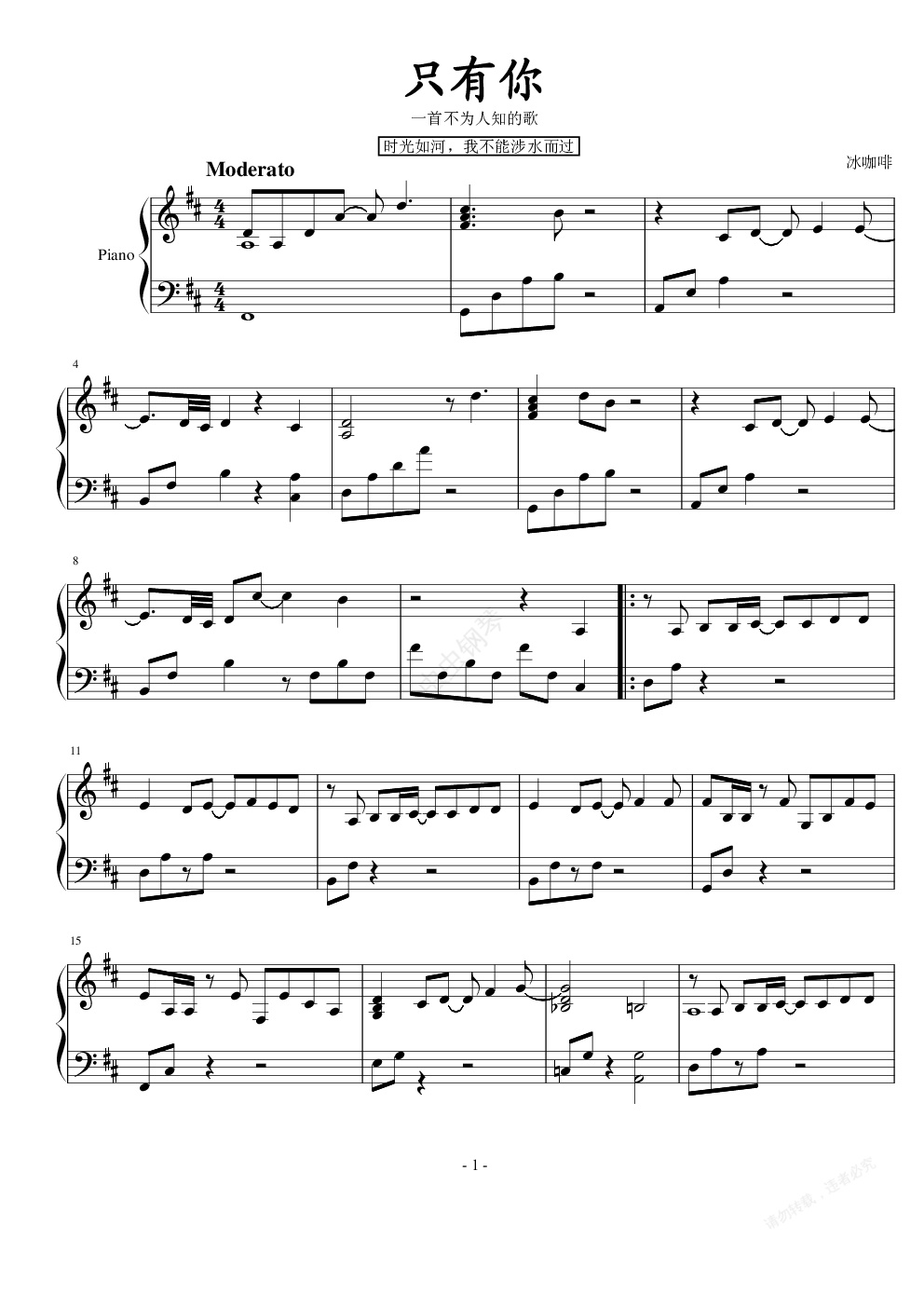 钢琴谱:只有你