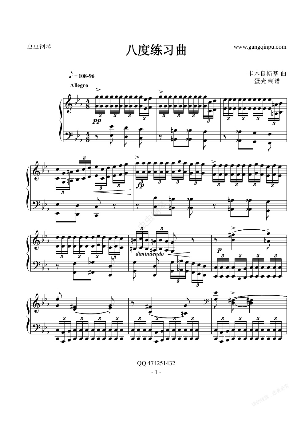 钢琴谱:八度练习曲(十级类技巧性练习曲)