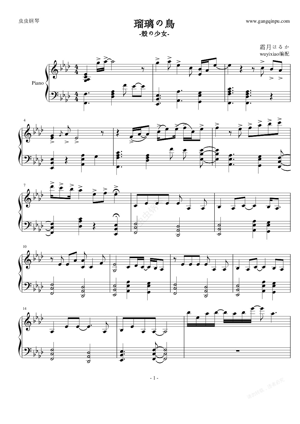 钢琴谱:瑠璃の鳥(殻の少女)