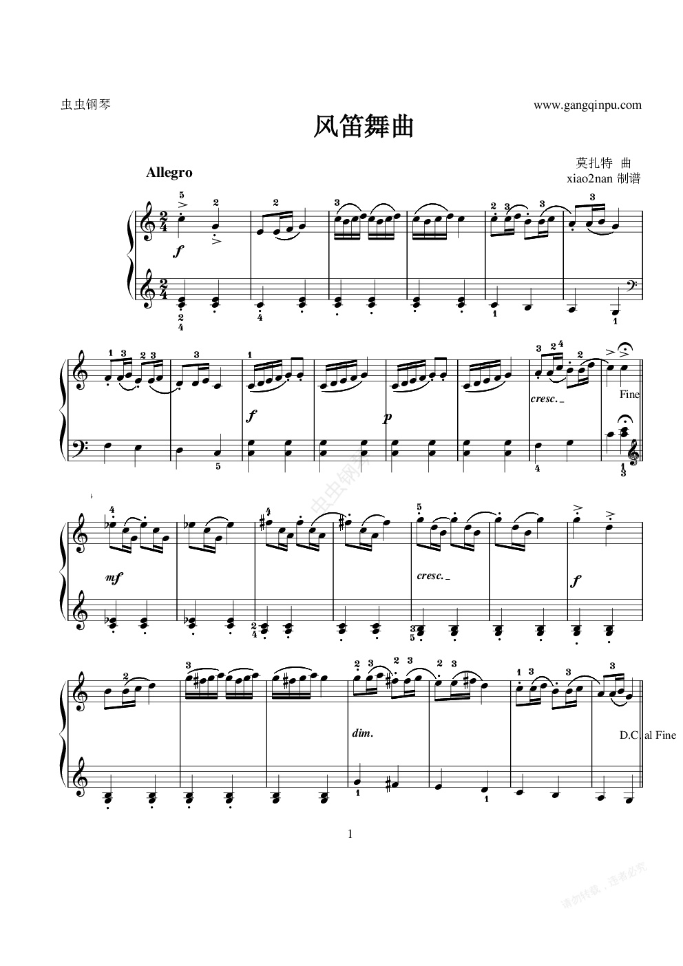 钢琴谱:风笛舞曲