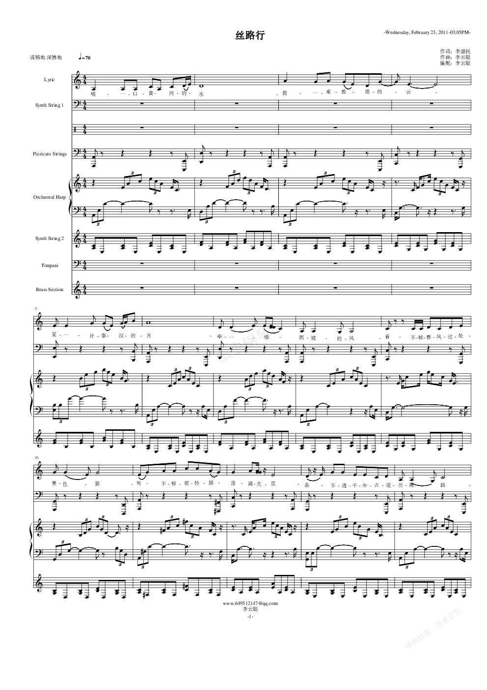 钢琴谱:丝路行