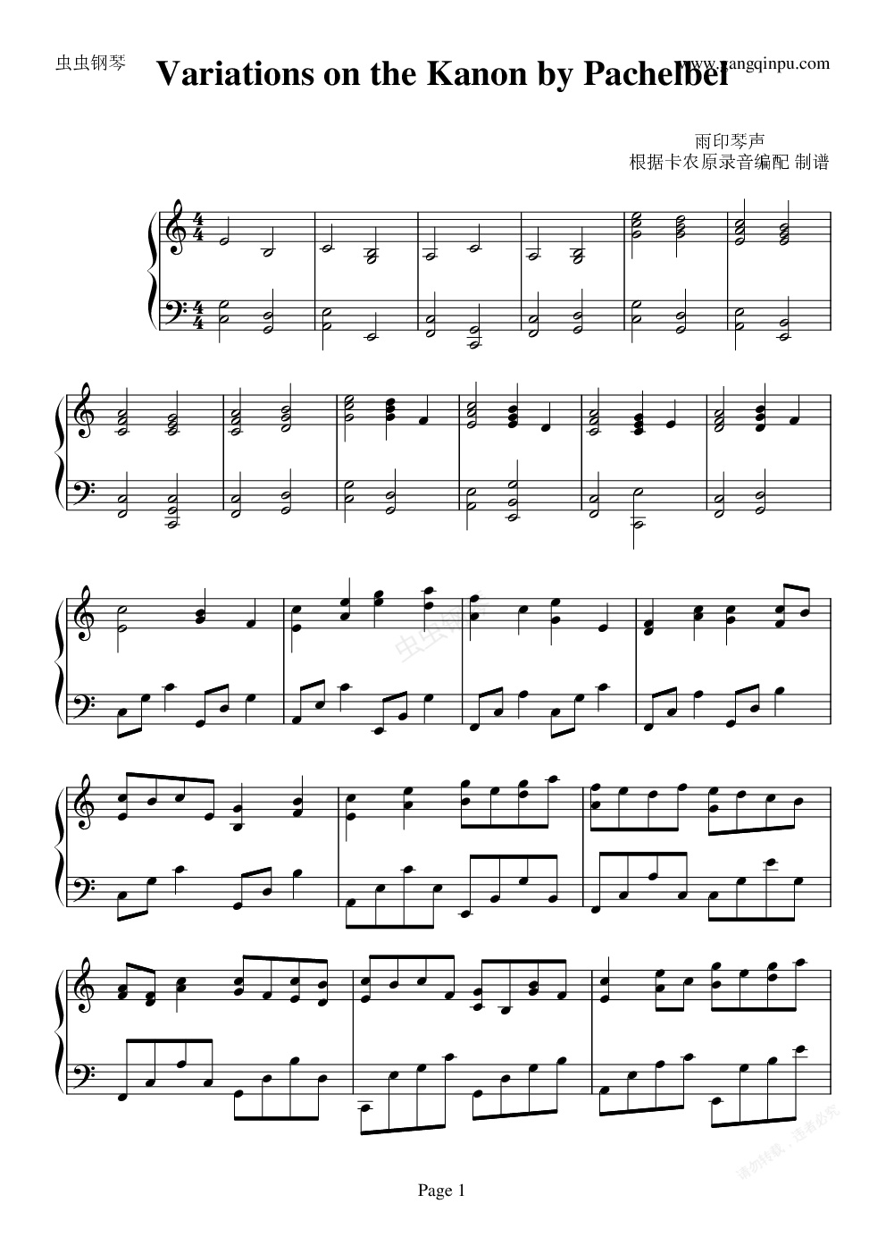 钢琴谱:卡农(与原录音完全一致!)