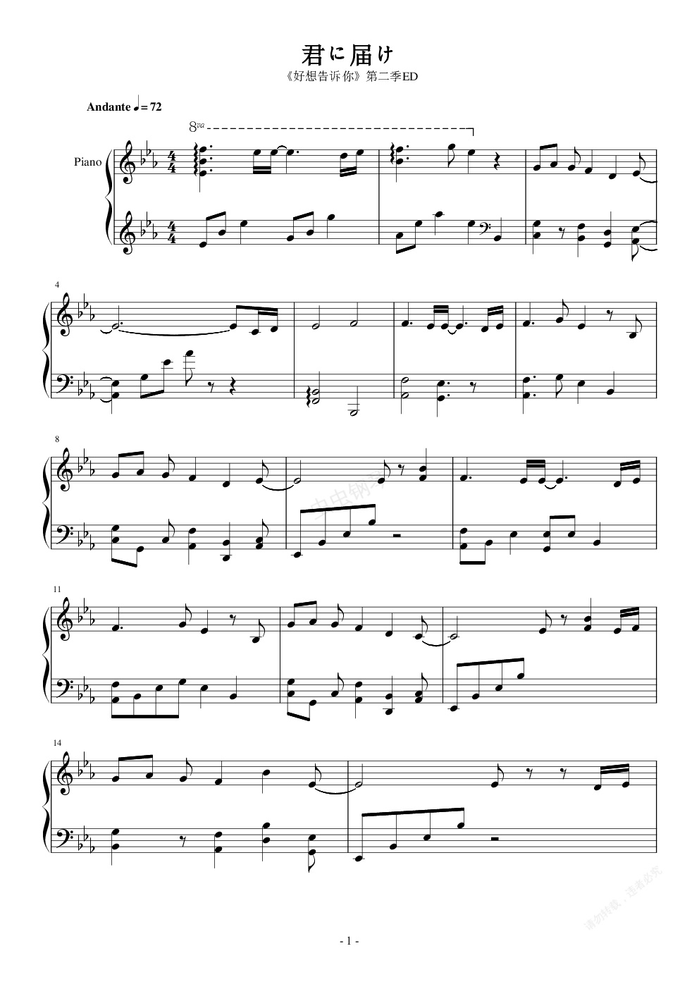 钢琴谱:君に届け2 ED
