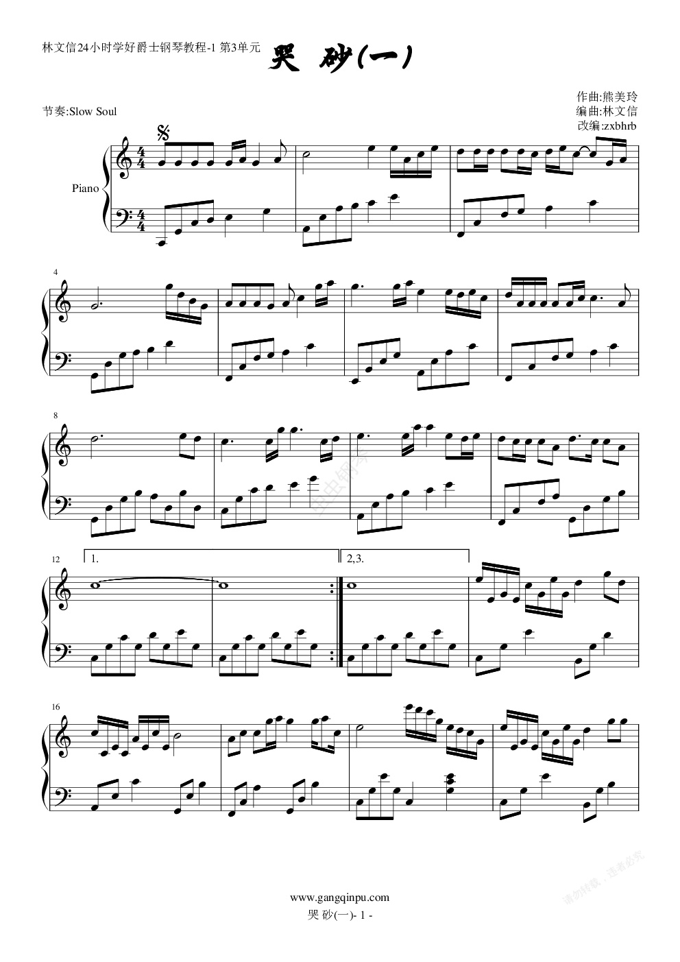 钢琴谱:哭砂(一)