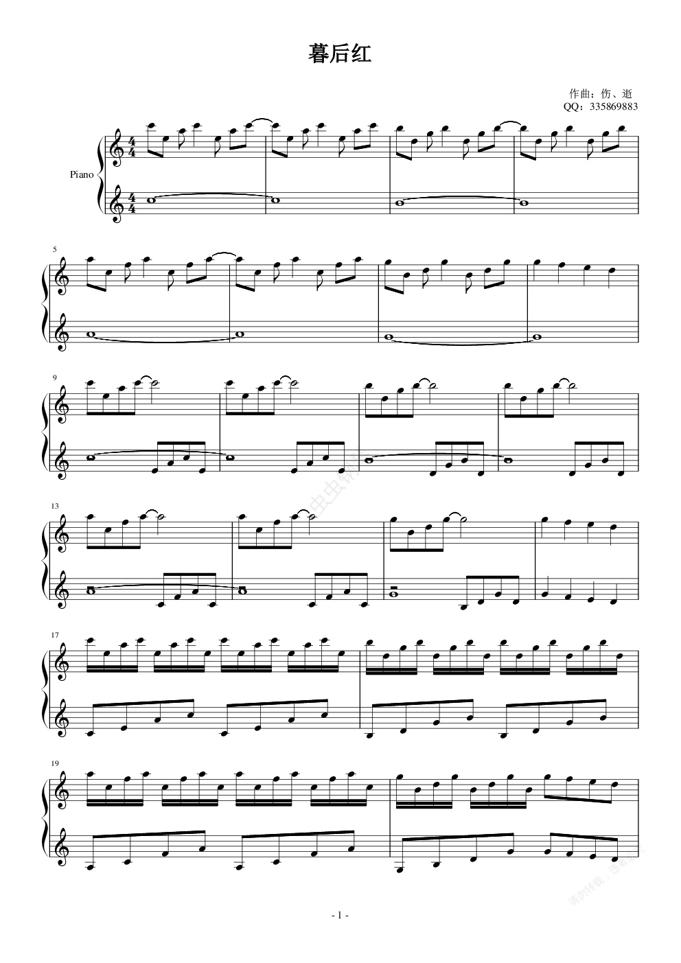 但我答应了他用“暮后红”来做这个谱子的名字,就这样罗。