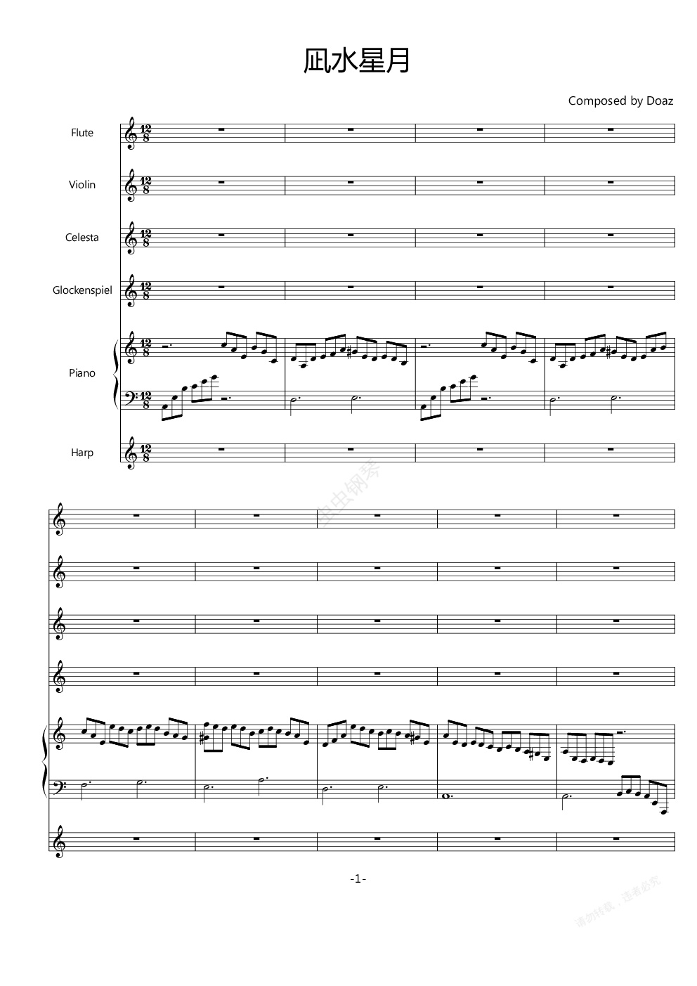 钢琴谱:凪水星月