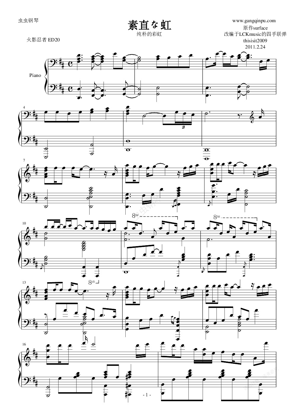 钢琴谱:【】火影忍者【纯朴的彩虹】华丽独奏版(有难度)