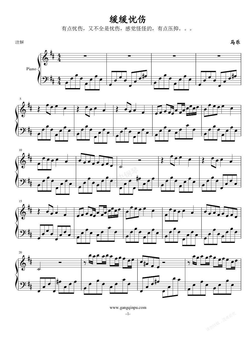 钢琴谱:缓缓忧伤