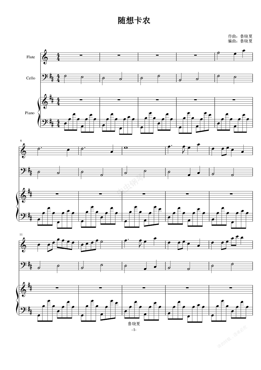 钢琴谱:随想卡农(钢琴小提大提)