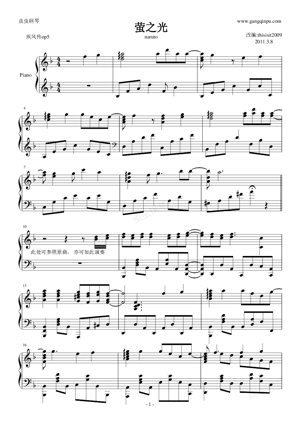 钢琴谱:【】火影忍者疾风传op【萤之光】演奏版。品质保证