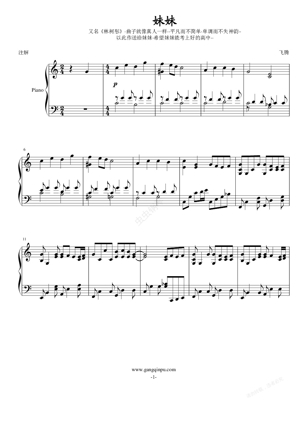 钢琴谱:妹妹