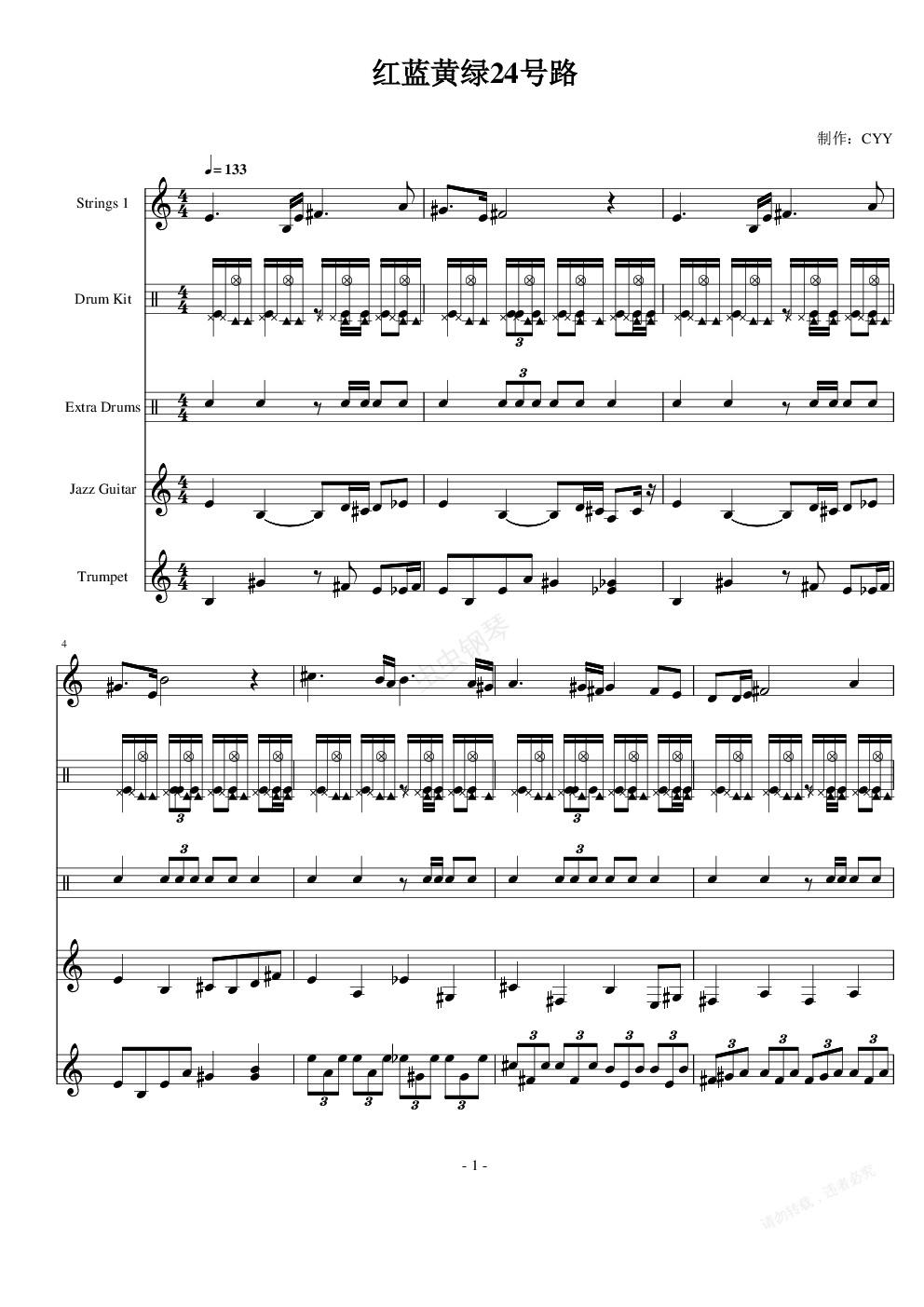 钢琴谱:口袋妖怪红蓝黄绿24号路总谱