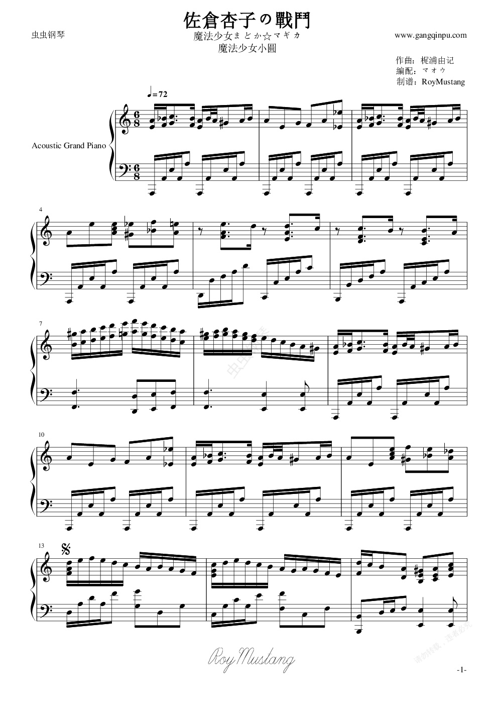 钢琴谱:[魔法少女小圆]佐倉杏子の戰鬥
