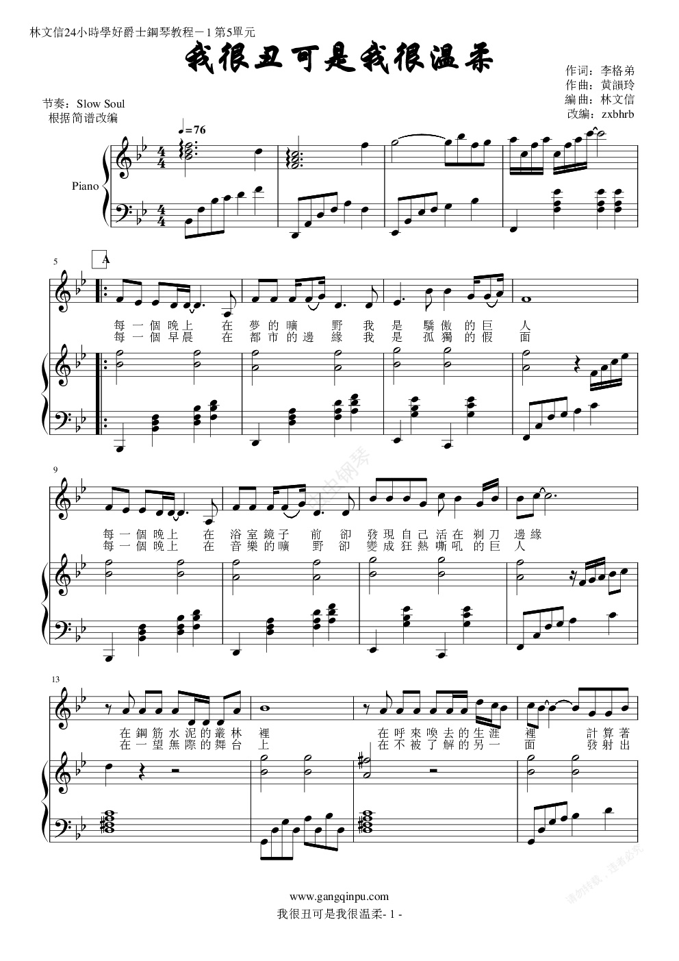 钢琴谱:《我很丑可是我很温柔》(弹唱版)