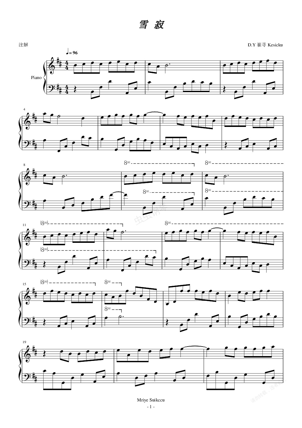 钢琴谱:雪 寂