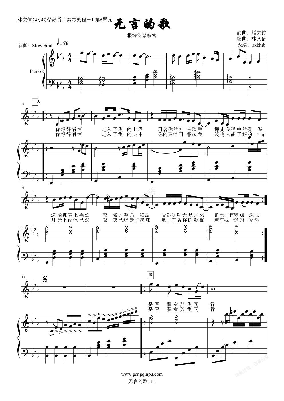 钢琴谱:《无言的歌》(弹唱版)