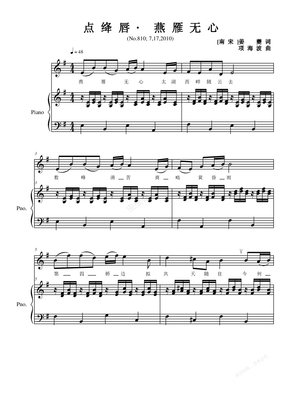钢琴谱:点绛唇·燕雁无心