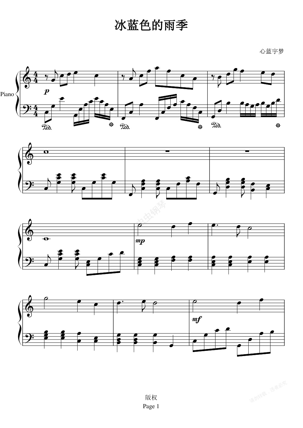 这首曲子是在一个下雨天中写的,比较宁静,舒缓,但是后边也有激情,冰给人寒冷,蓝色给人忧伤,但正因为这样,更要与恶劣的环境抗争,与命运抗争,即便是孤独的一个人也是如此,做人就要忍受得了寂寞才能成大器!