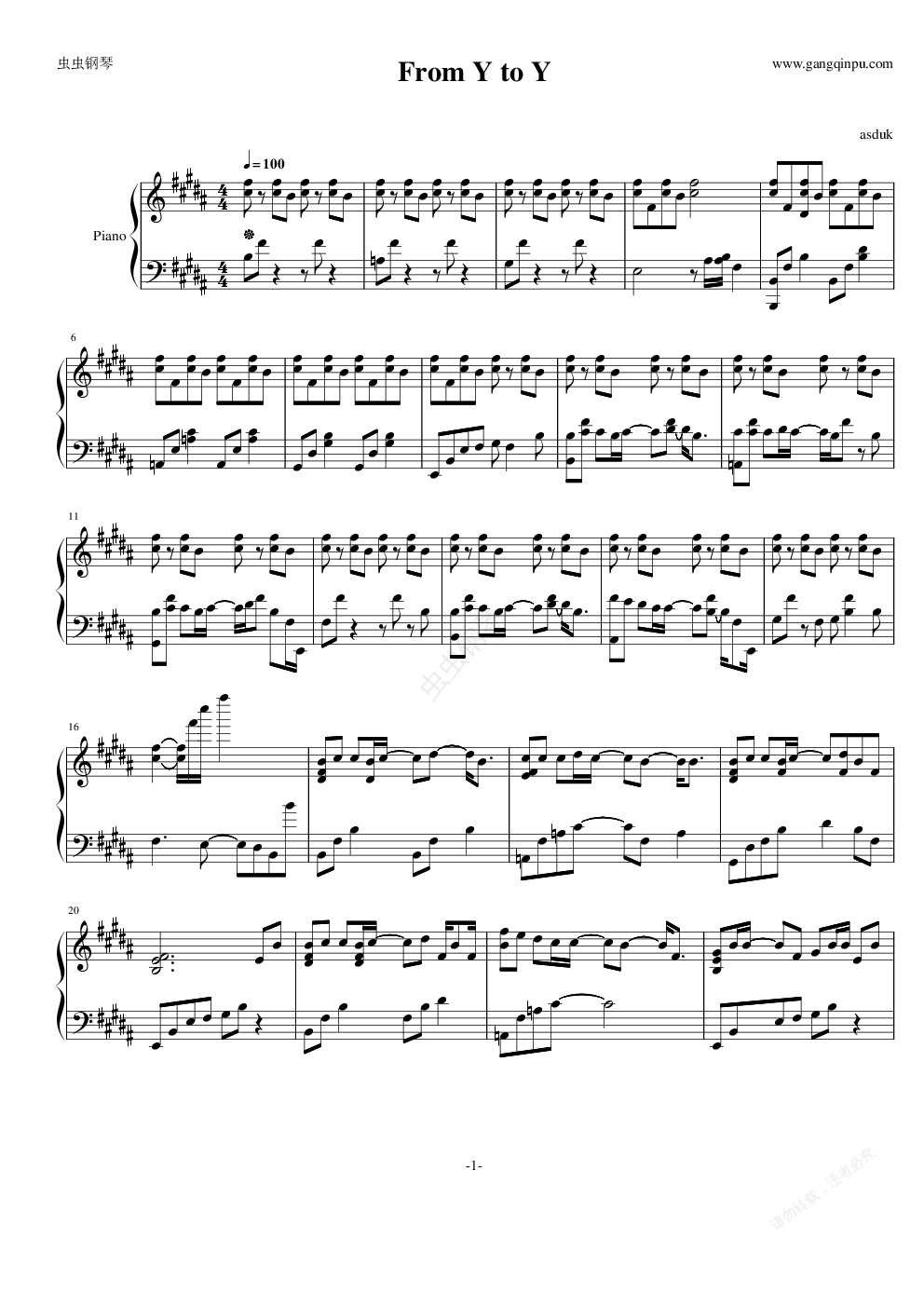 钢琴谱:from y to y 触手猴版