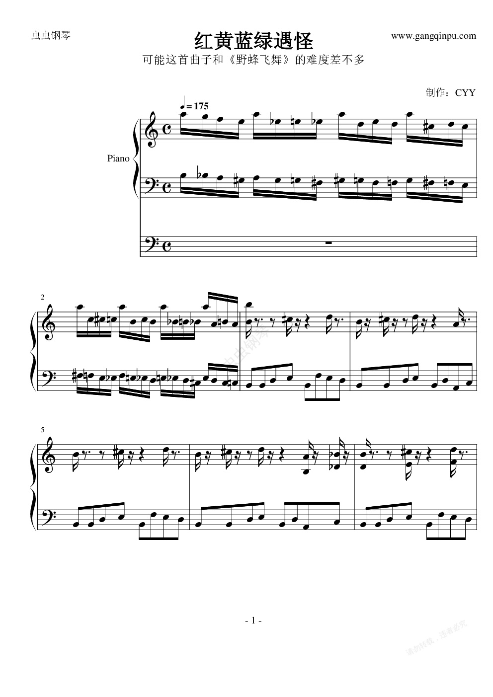 钢琴谱:口袋妖怪 红蓝黄绿 战斗