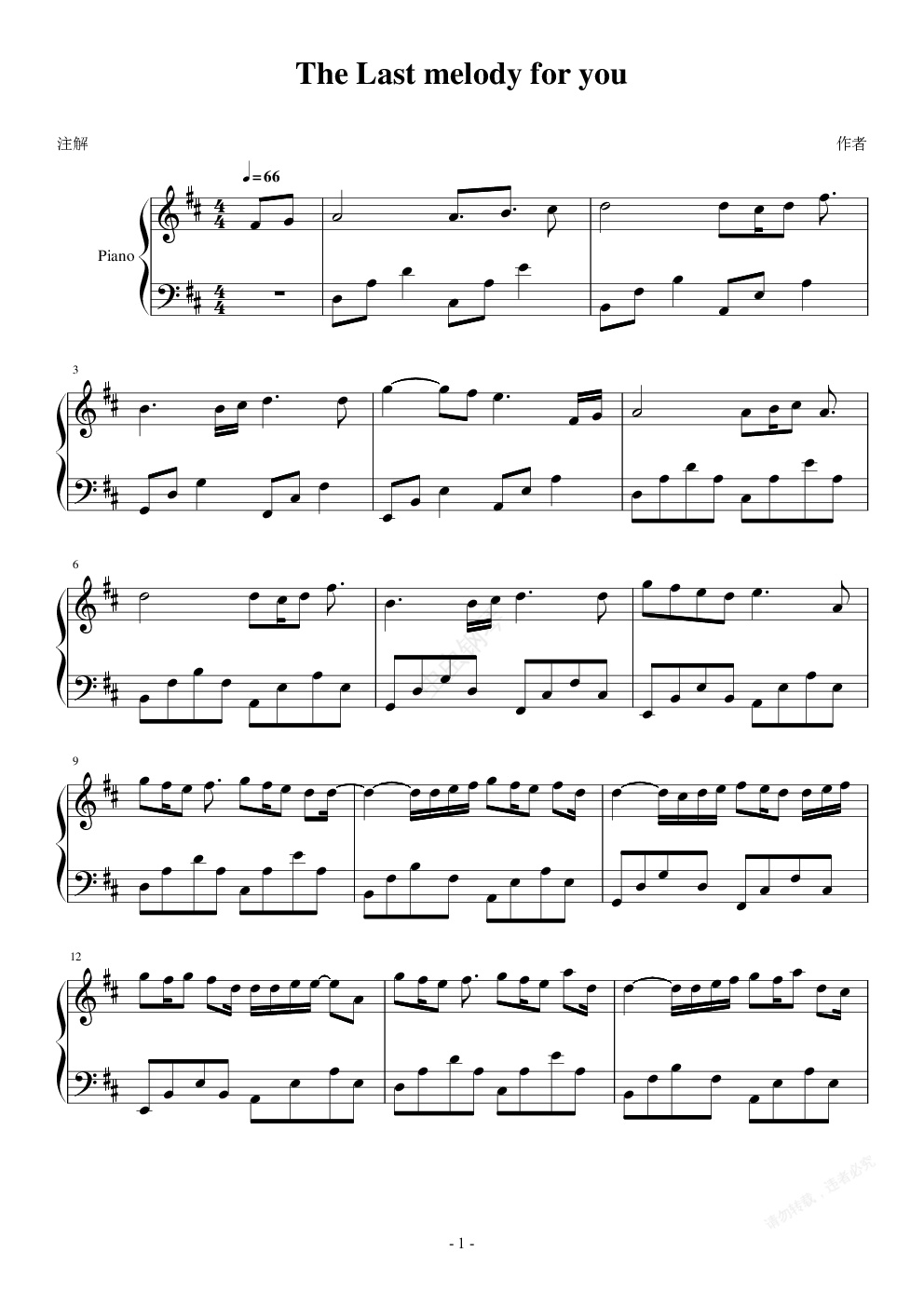 钢琴谱:The last melody for you