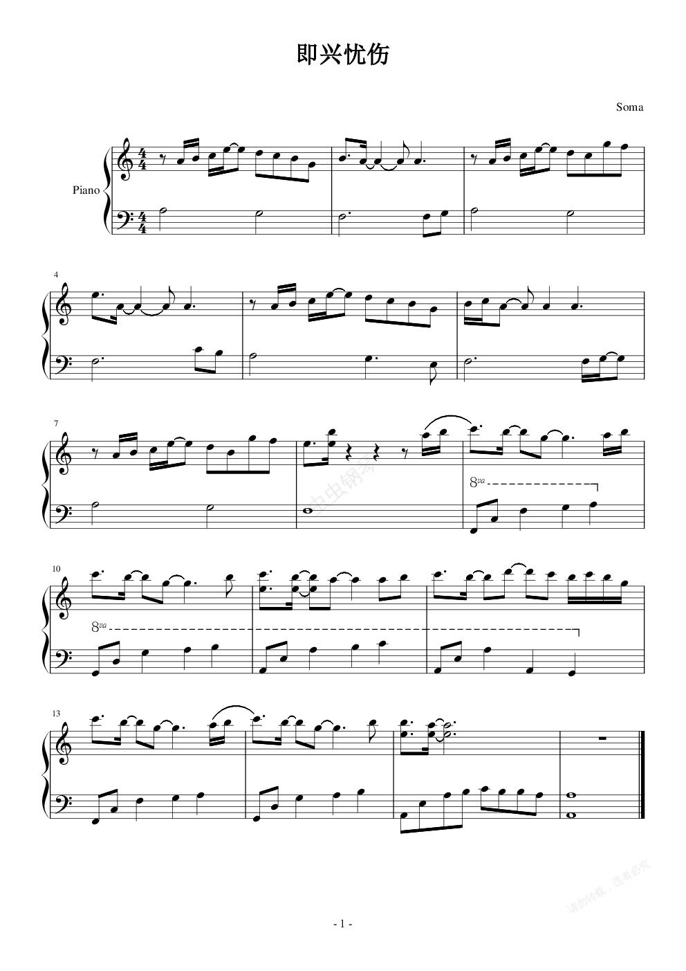 您的位置: 首页 > 钢琴谱库 > 一分钟的忧伤
