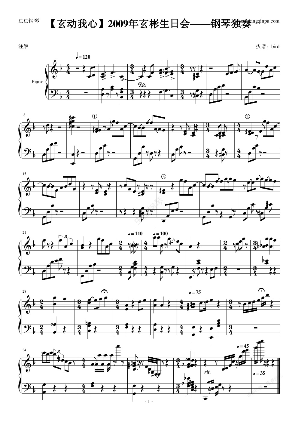 钢琴谱:【玄动我心】2009年玄彬生日会——钢琴独奏