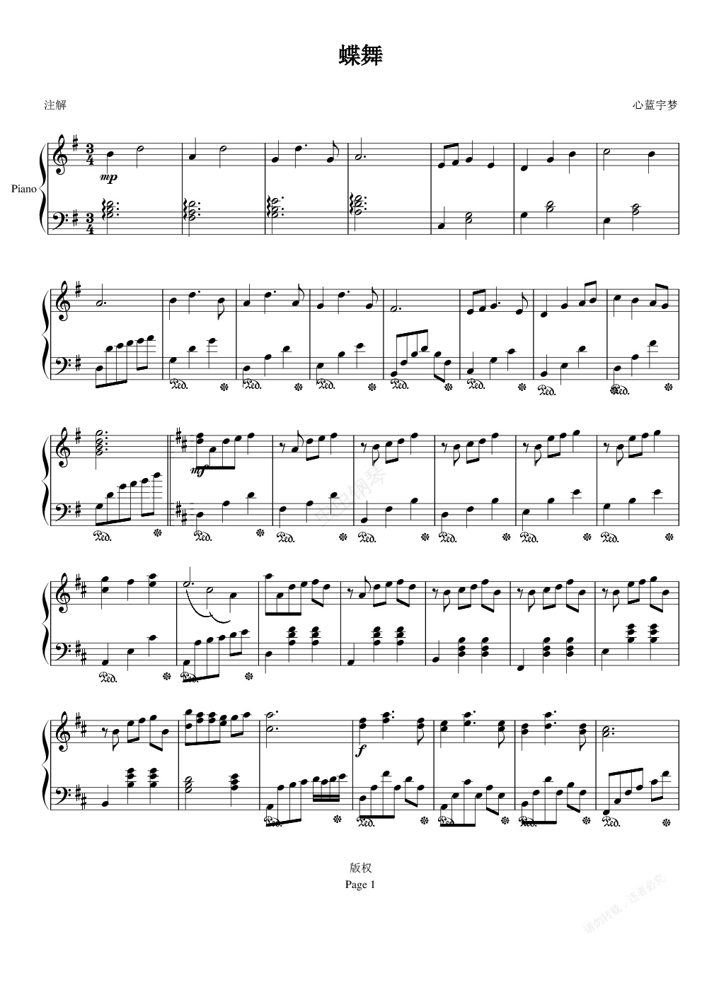 钢琴谱:蝶舞