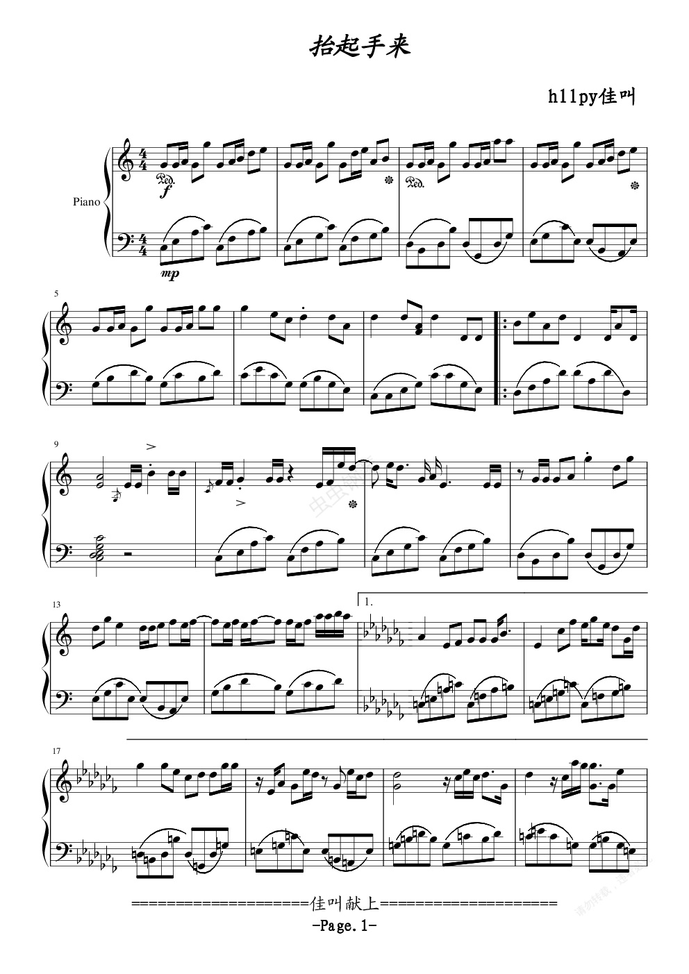 钢琴谱:抬起手来