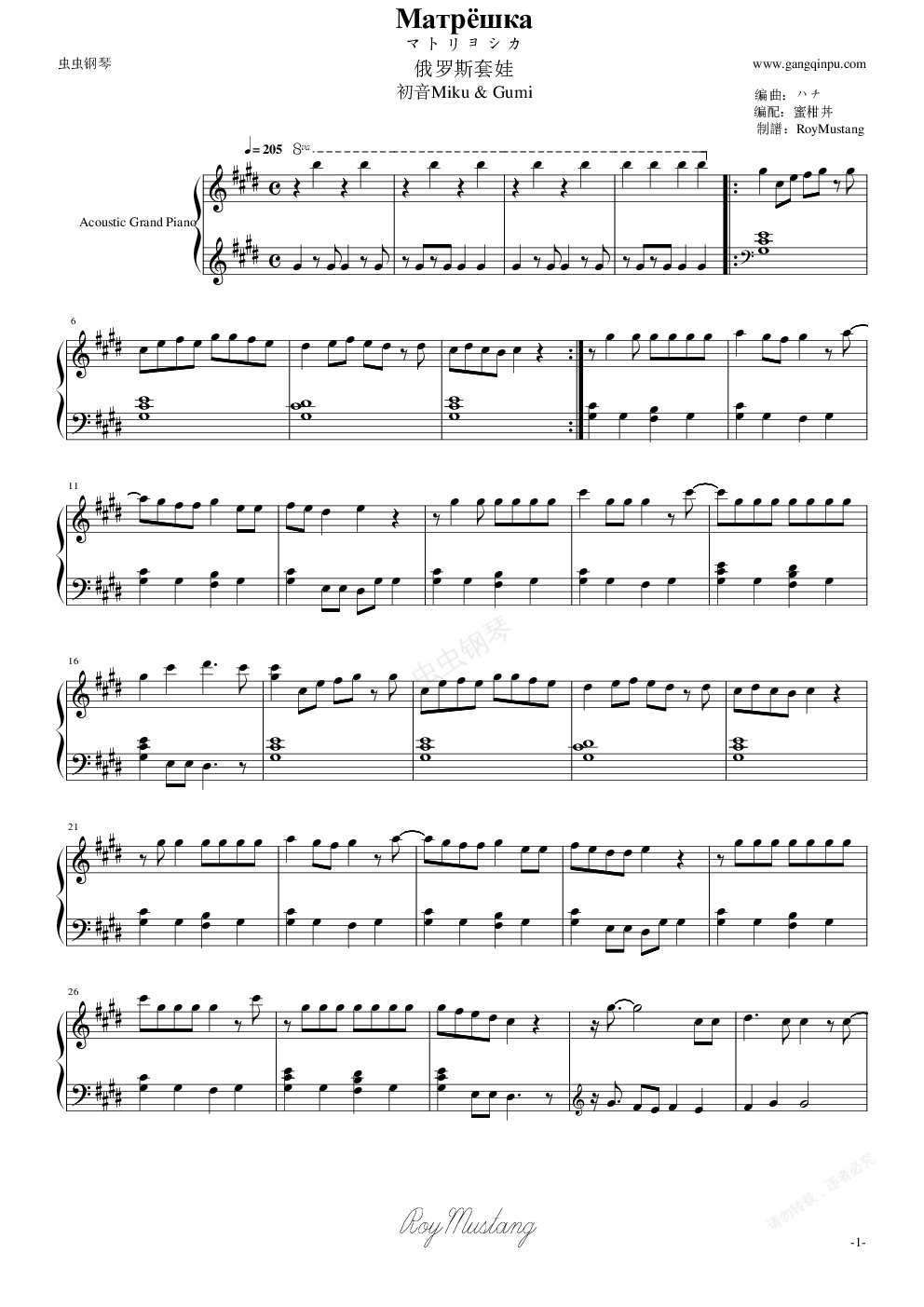 钢琴谱:[Матрёшка]俄羅斯套娃