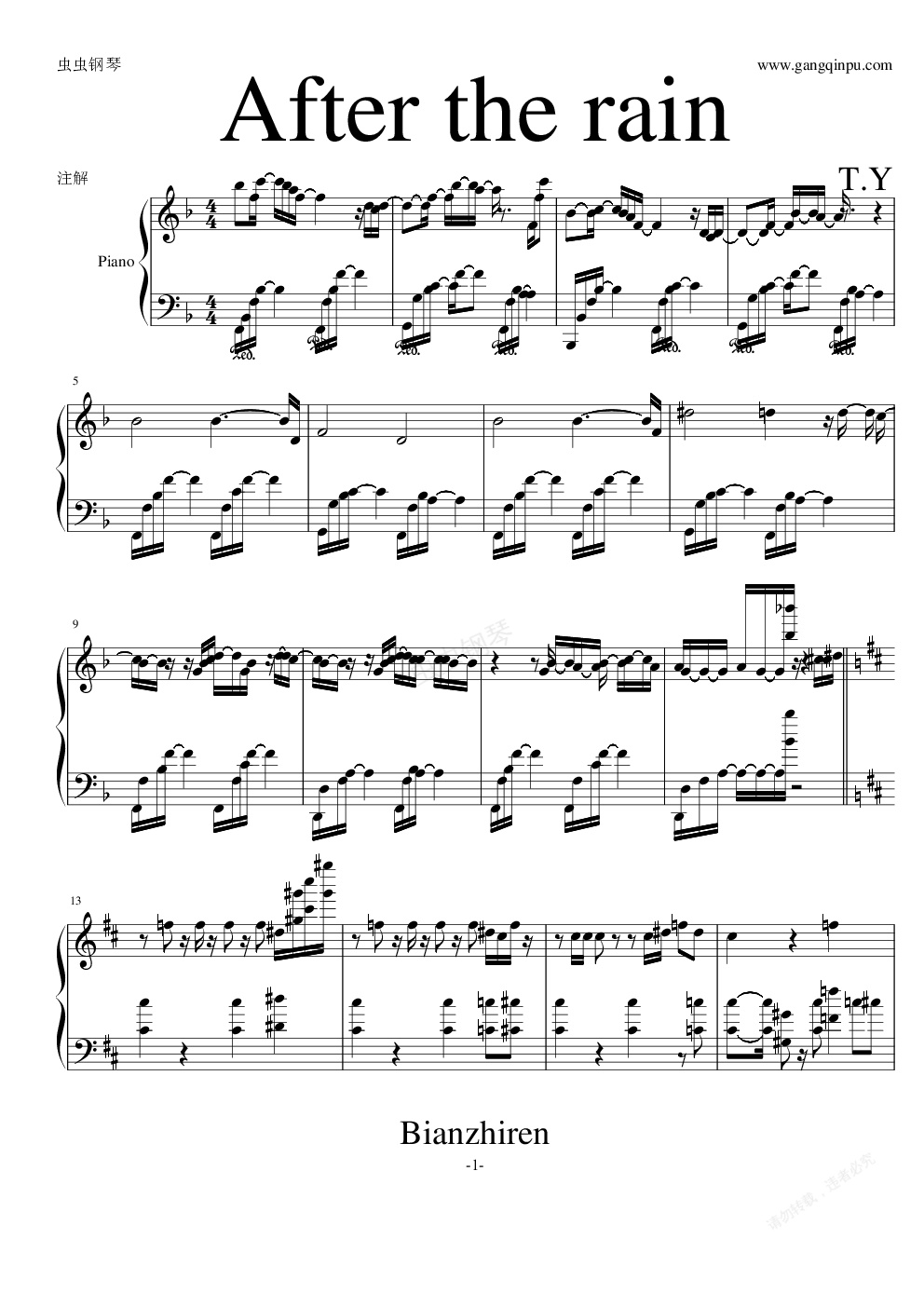钢琴谱:After the rain(山下智久)