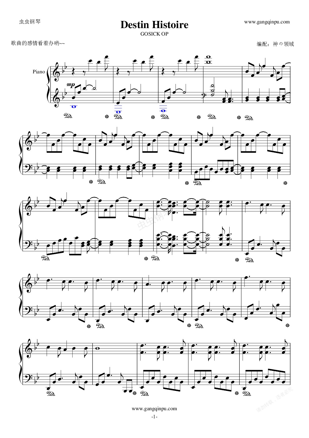 钢琴谱:Destin Histoire(GOSICK_OP)