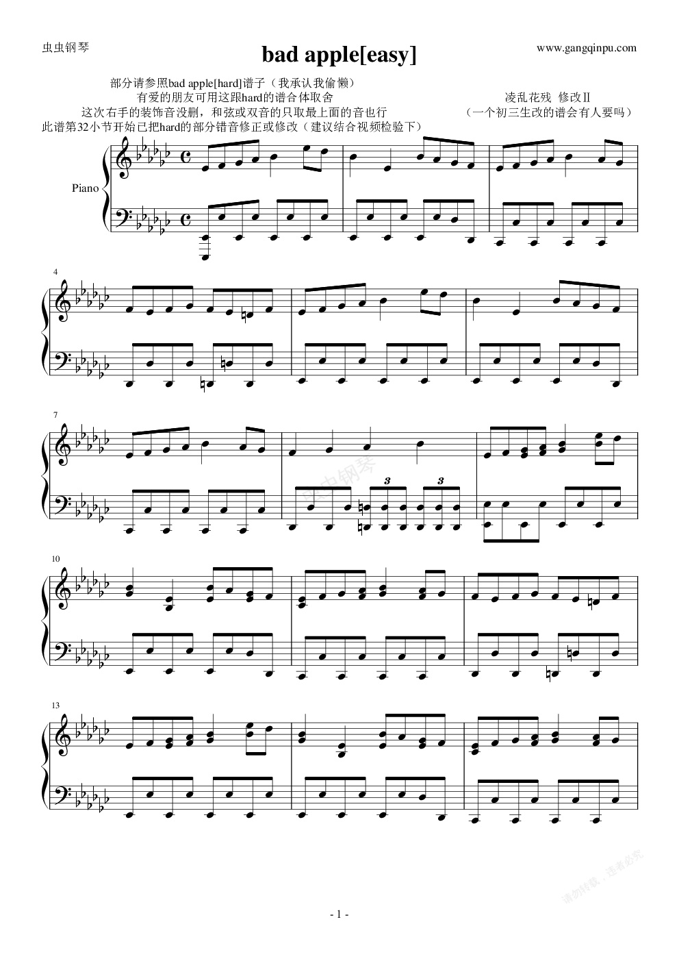 钢琴谱:此谱已作废