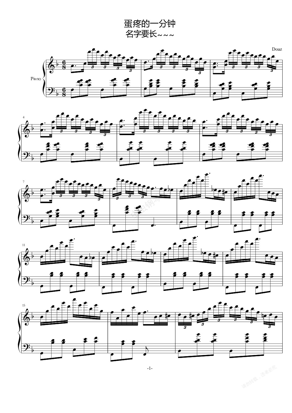 钢琴谱:蛋疼的一分钟 名字要长~~~~~~