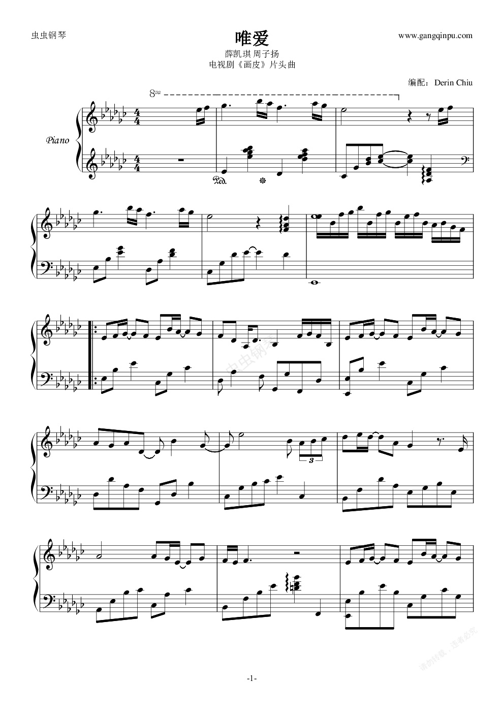钢琴谱:唯爱(《画皮》片头曲)