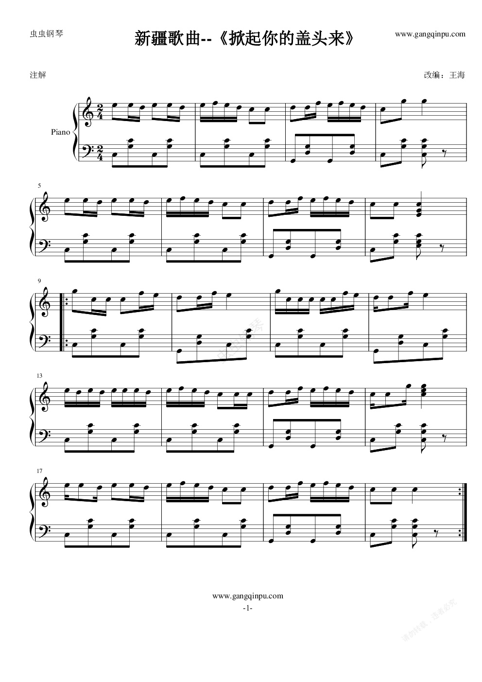 钢琴谱:掀起你的盖头来