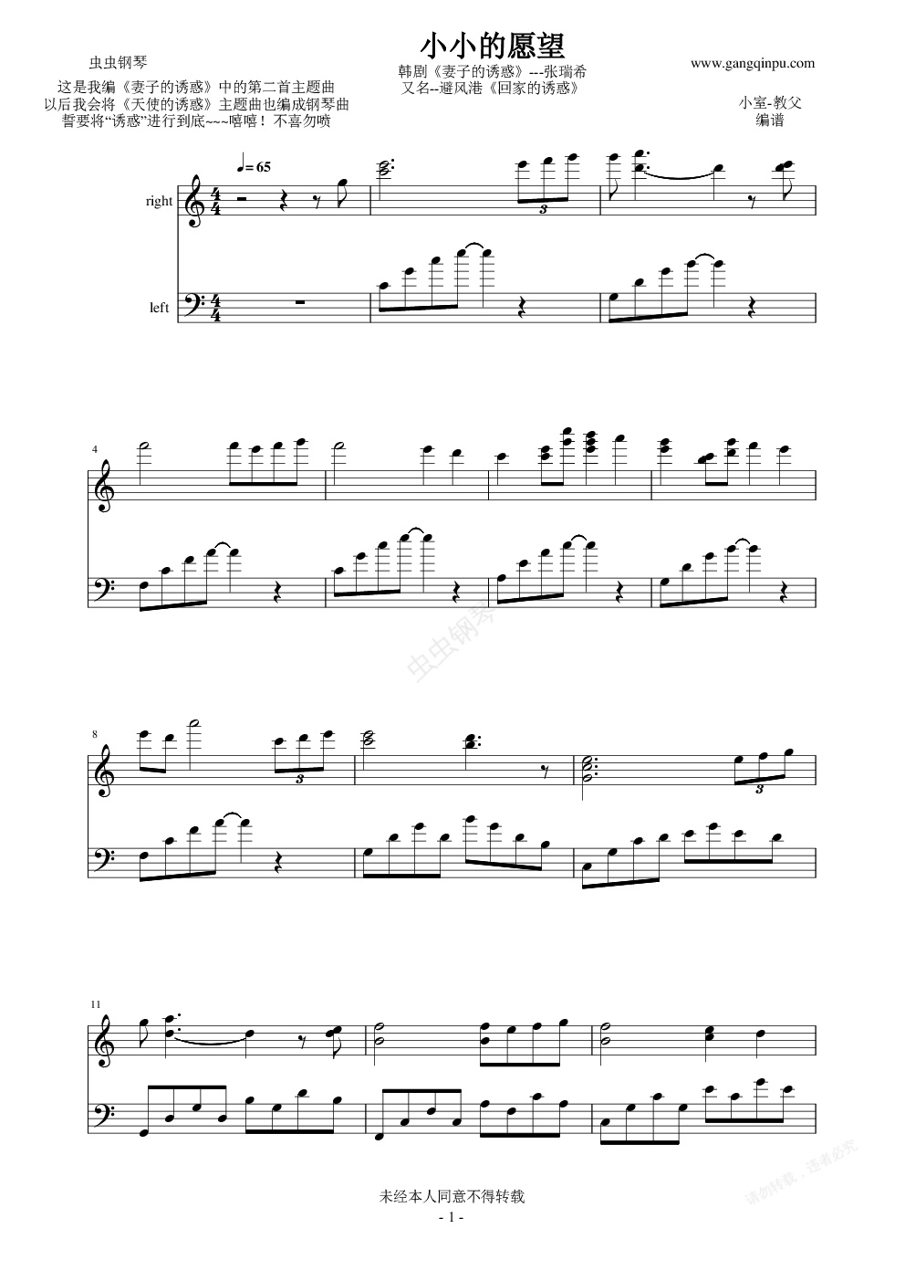 钢琴谱:小小的愿望-----韩剧《妻子的诱惑》