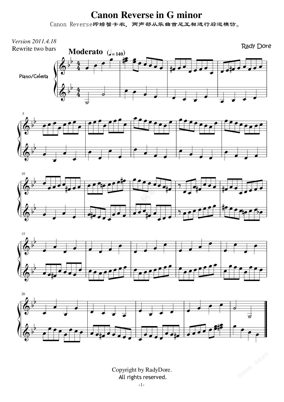 钢琴谱:g小调正反卡农(Ver.2011.4)