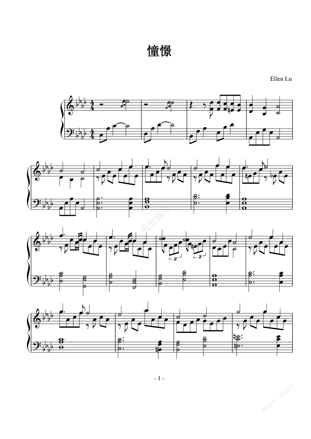 钢琴谱:憧憬