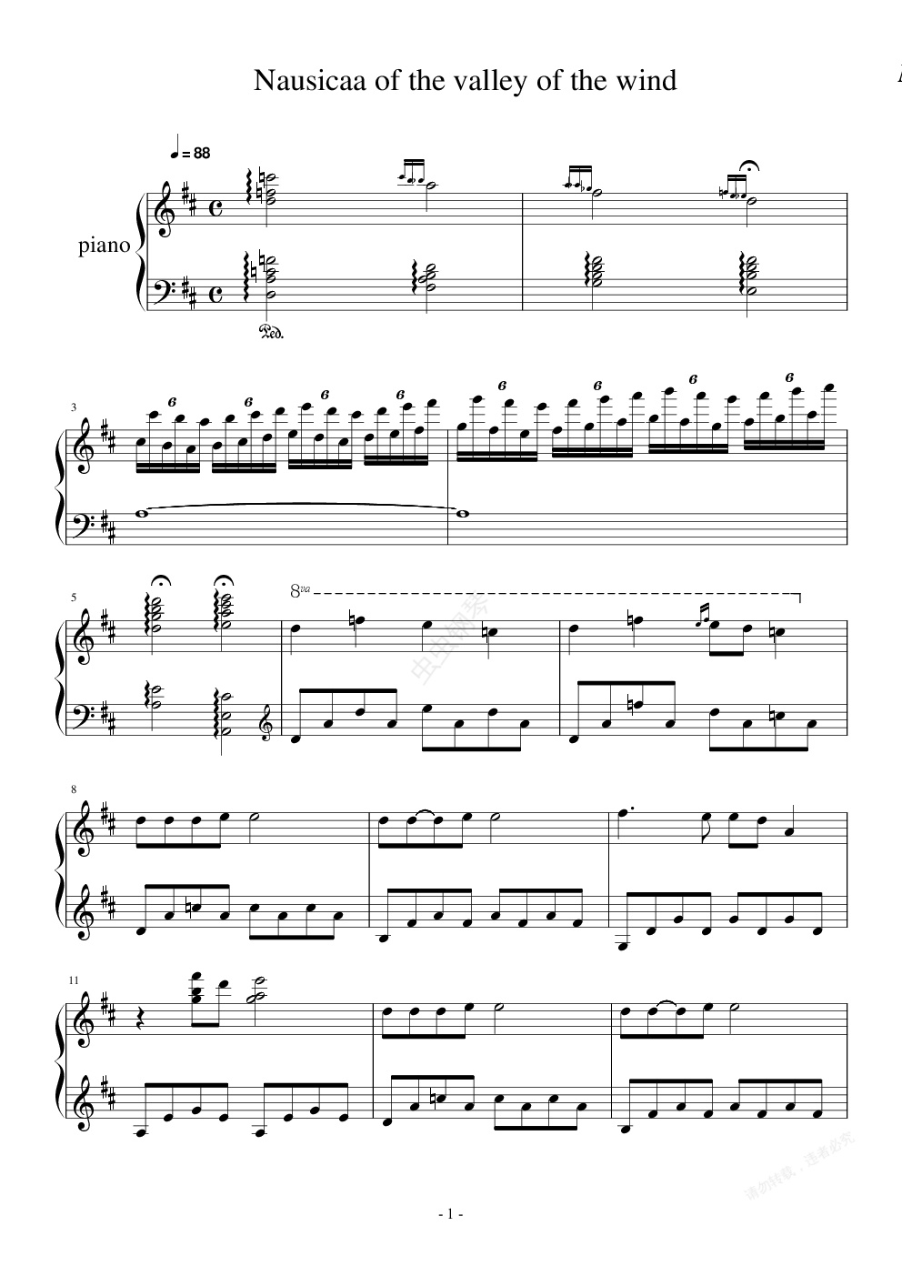 钢琴谱:风之谷的娜乌西卡(Nausicaa of the valley of the wind)