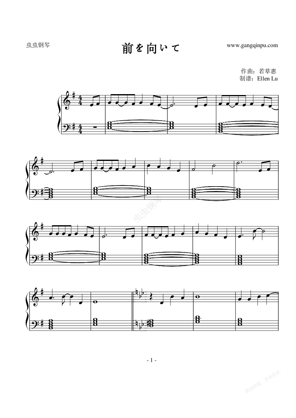 钢琴谱:前を向いて(《棋魂》主题曲钢琴版,按照原版听谱)