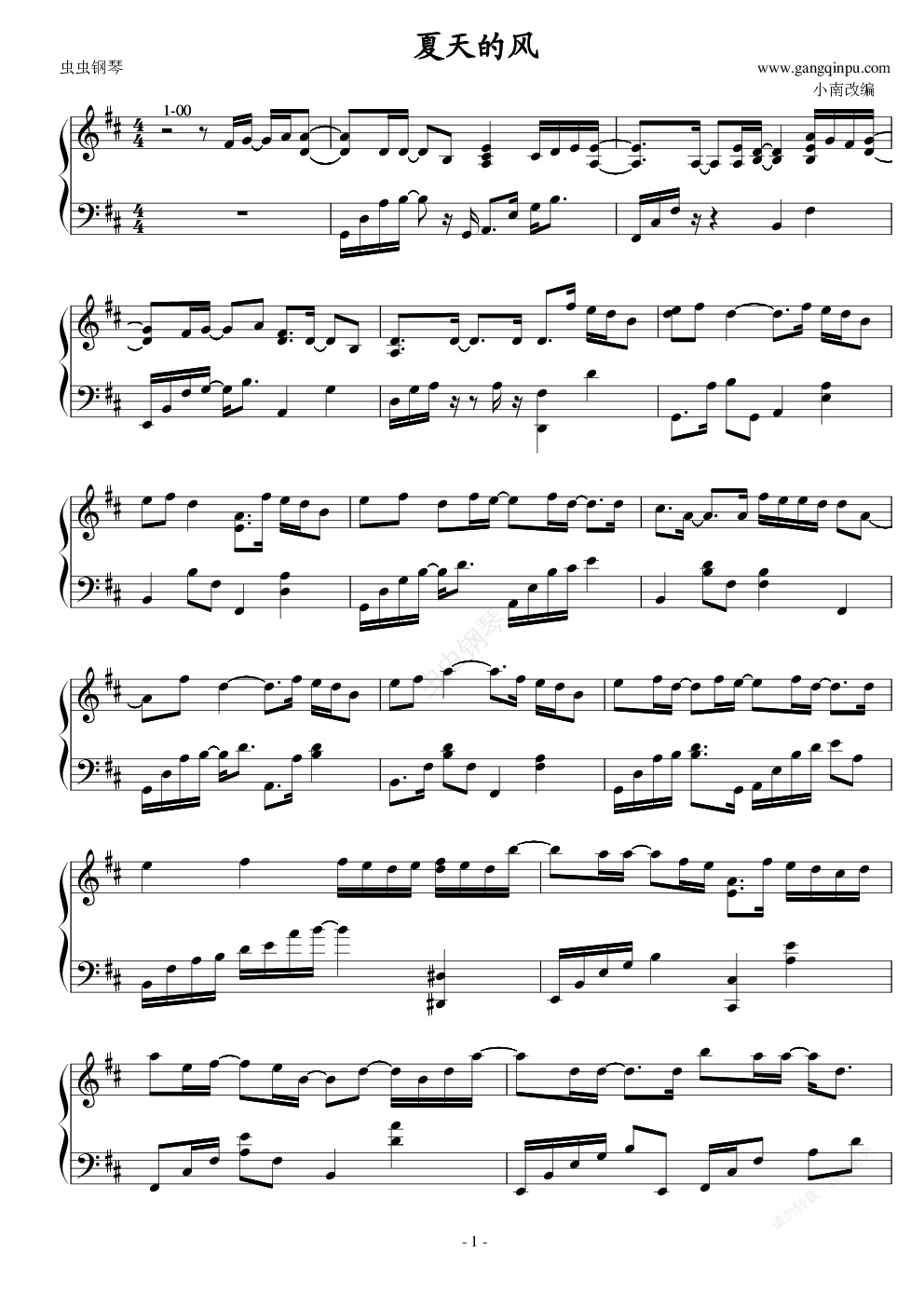 钢琴谱:夏天的风