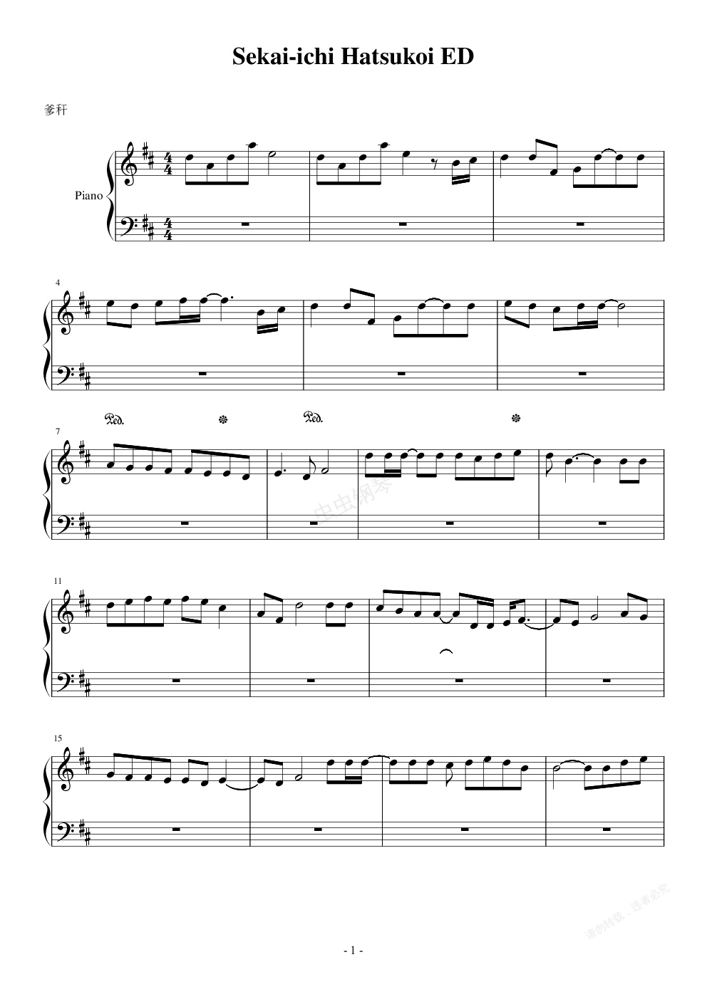 钢琴谱:世界第一初恋ED 单手版