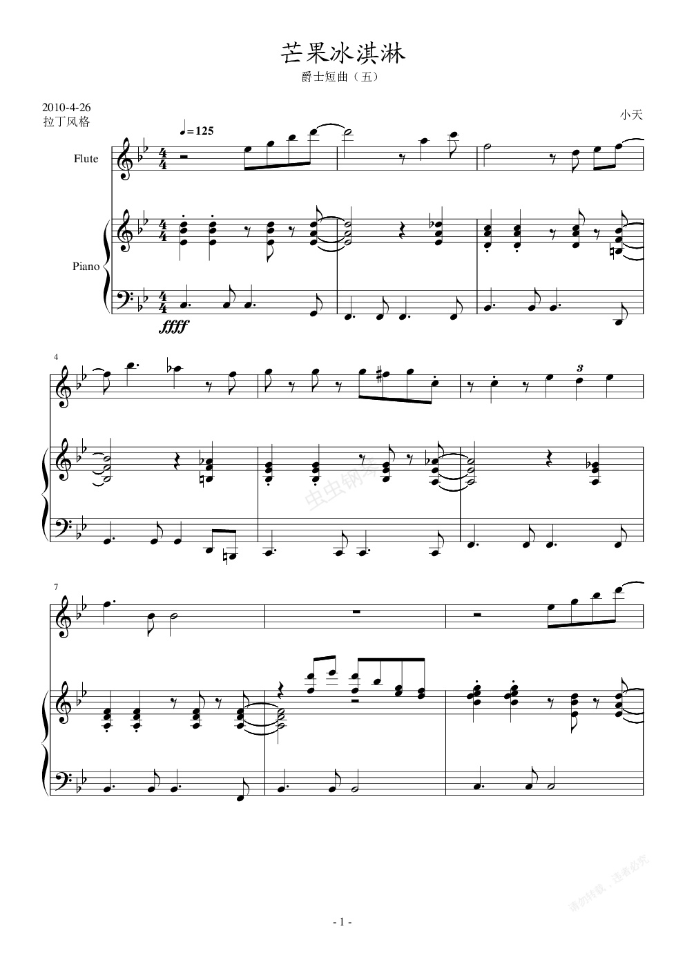 钢琴谱:芒果冰淇淋