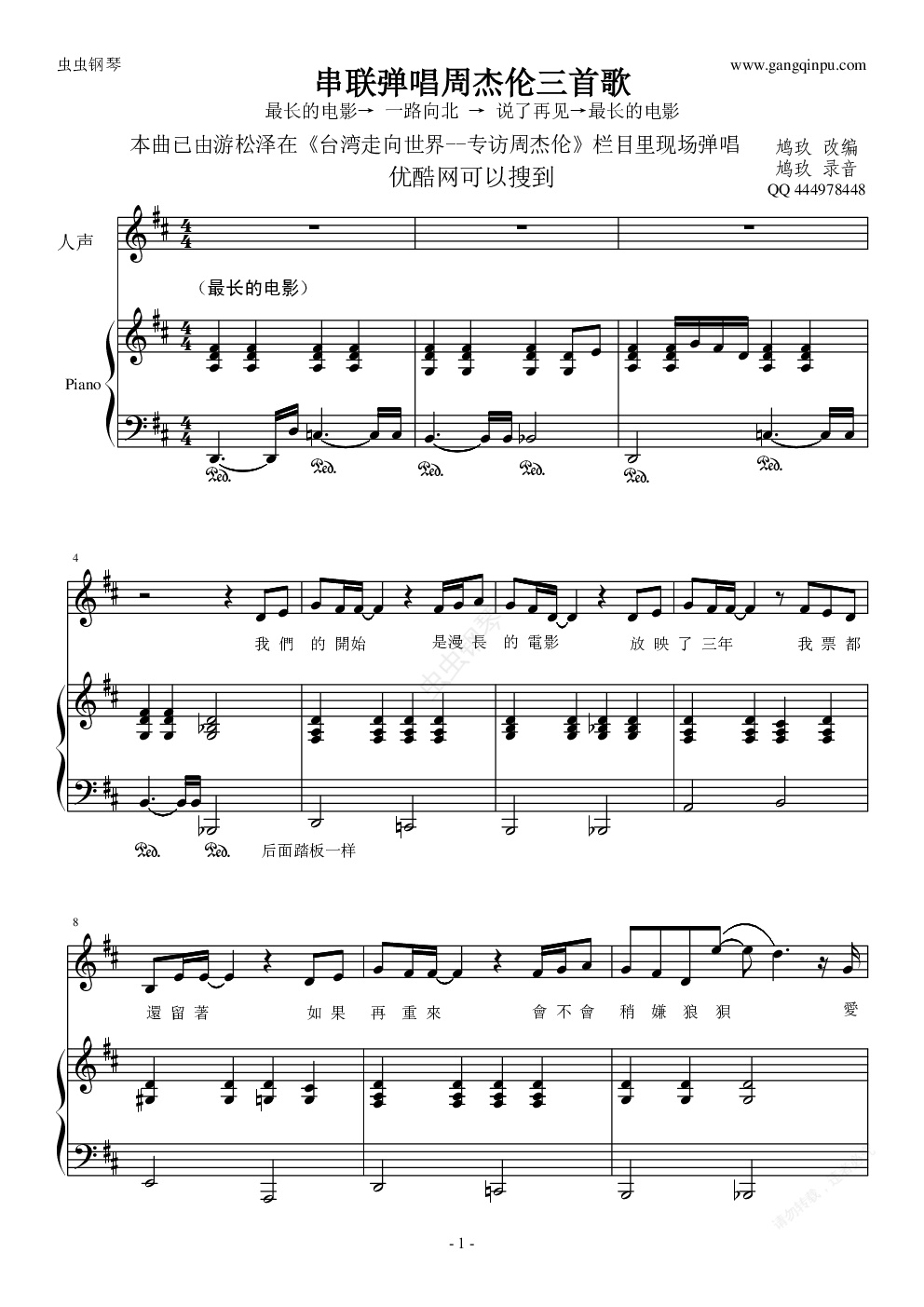 钢琴谱:串联弹唱周杰伦三首歌曲