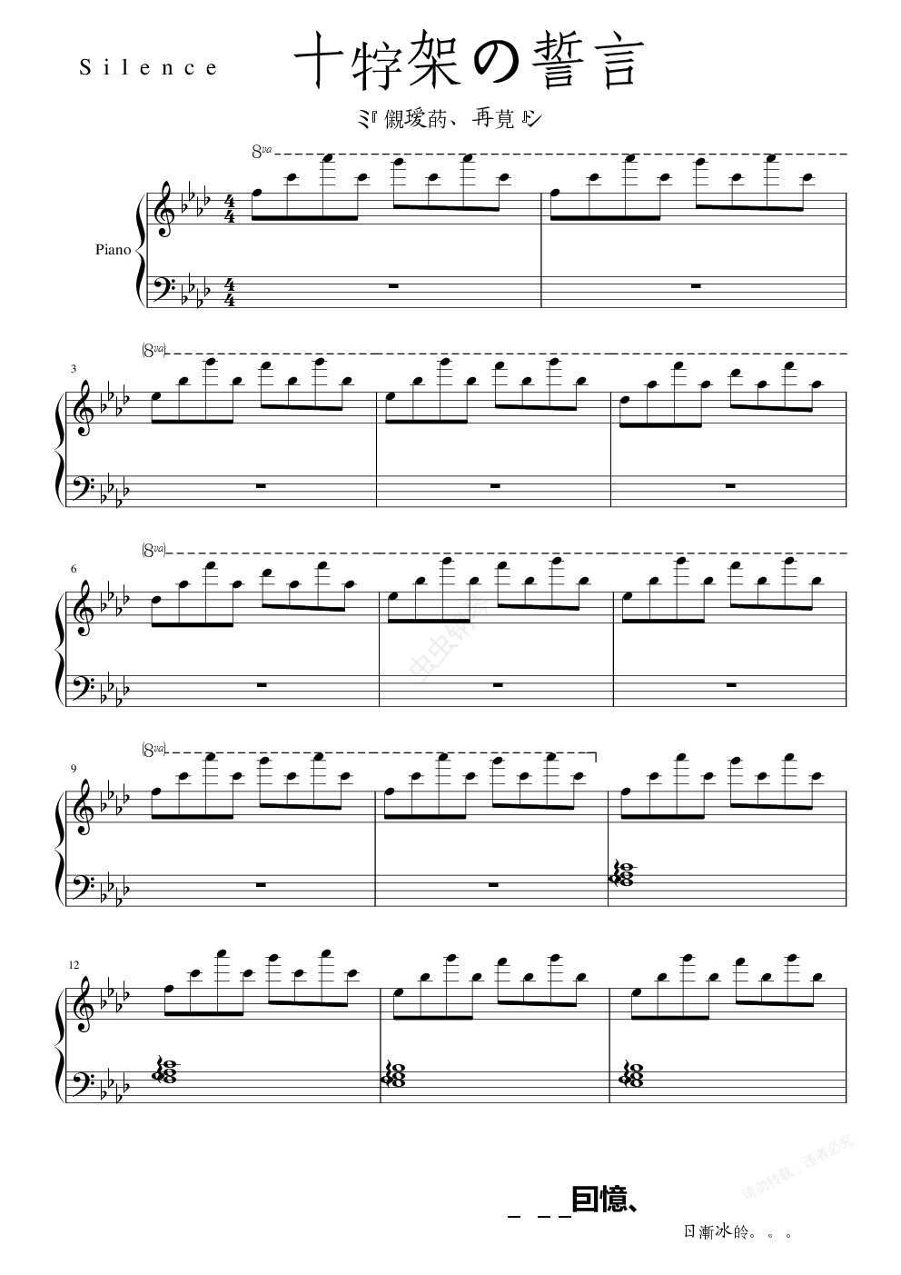 钢琴谱:十字架的誓言