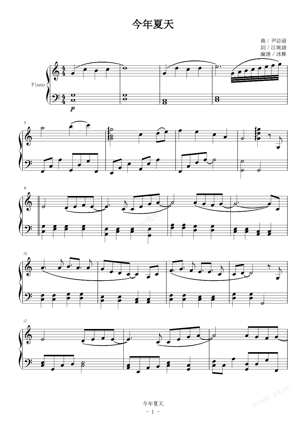 钢琴谱:今年夏天